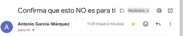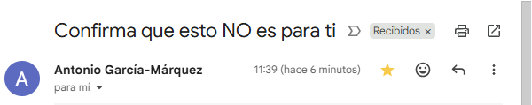 Para poder aprobar tu solicitud tienes que ir a tu bandeja de correo y abrir el email que te acabo de enviar. Se llama “Confirma que esto NO es para ti”
